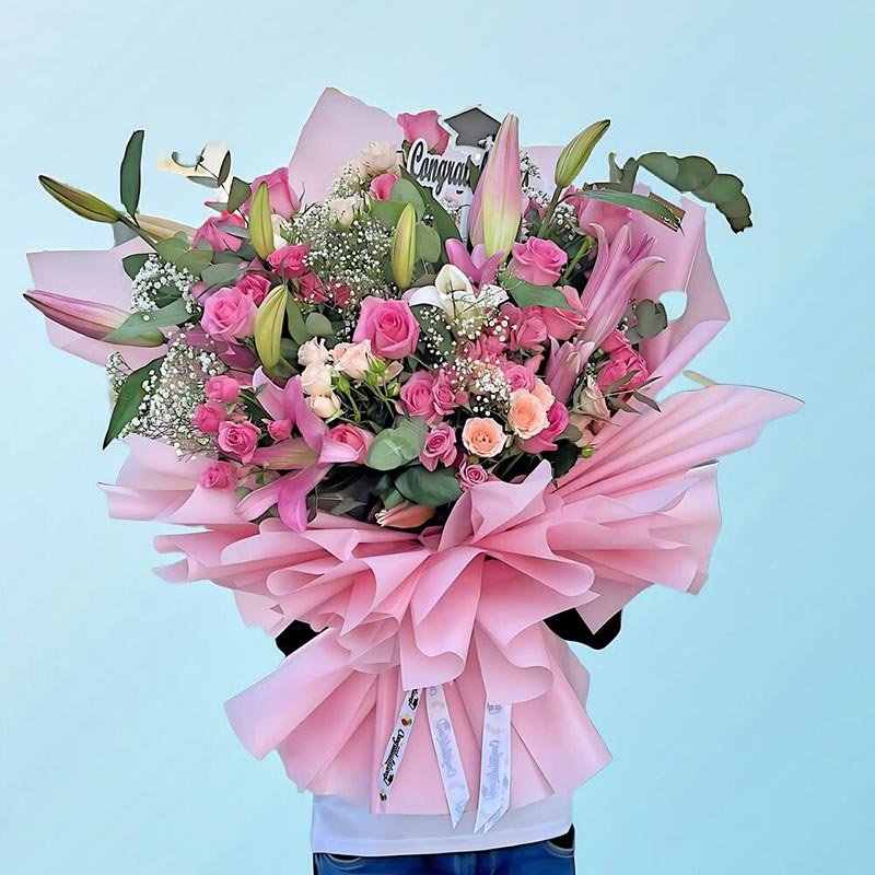 Delight in the charm of our mixed pink flower bouquet, artfully arranged with a beautiful selection of pink blooms to create a soft, elegant display. Perfect for bringing joy and sophistication to any occasion. Available at Mister Berry, with same-day delivery in Dubai, Sharjah, and Ajman, and next-day delivery for all other emirates.