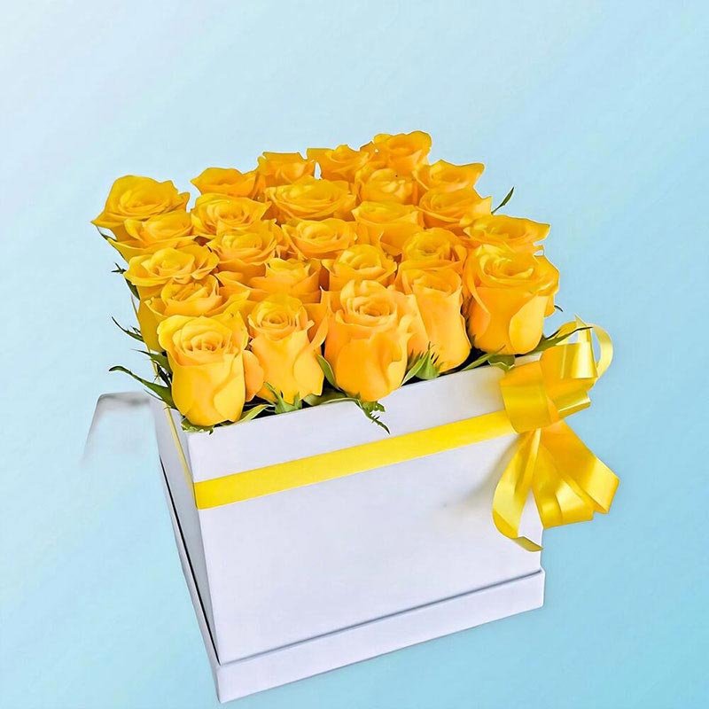 Yellow Roses In White Square Box